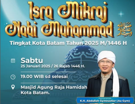 Peringatan Isra Mi’raj ini akan digelar pada Sabtu, 25 Januari 2025/26 Rajab 1446 H di Masjid Agung Raja Hamidah, Kota Batam.