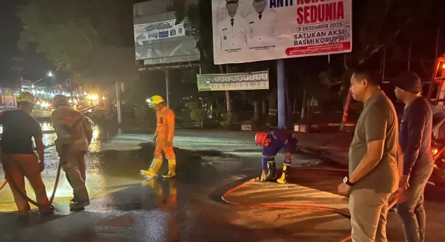 Kegiatan bersih-bersih jalan ini dilakukan Minggu 15 Februari 2026 malam.