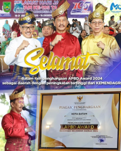 KARUNAKEPRI.COM, BATAM – Pemerintah Kota (Pemko) Batam meraih penghargaan bergengsi di ajang APBD Award 2024. Penghargaan tersebut diberikan Kementerian Dalam Negeri (Kemendagri) RI. Pemko
