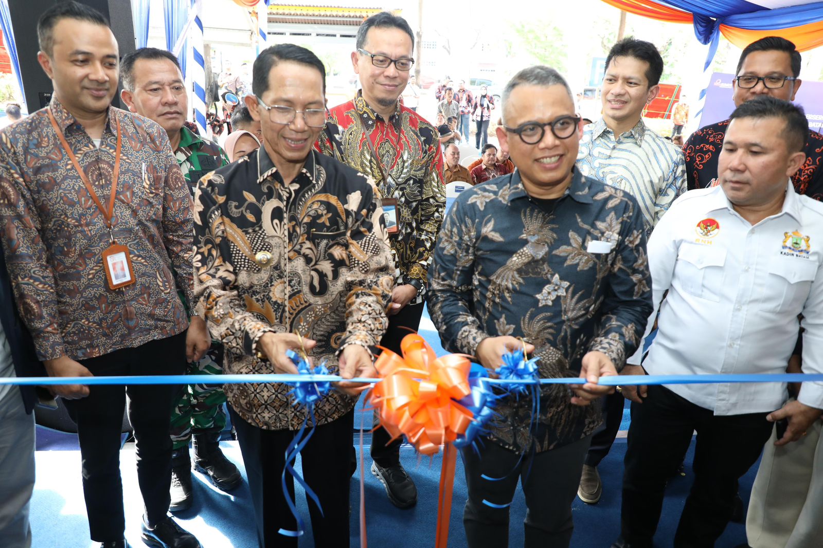 Walikota Batam Amsakar Achmad bersama Direktur Utama PT Bank Sumut, Heru Mardiansyah, melakukan gunting pita meresmikan kantor cabang Bank Sumut. (Foto:Diskominfo Batam)