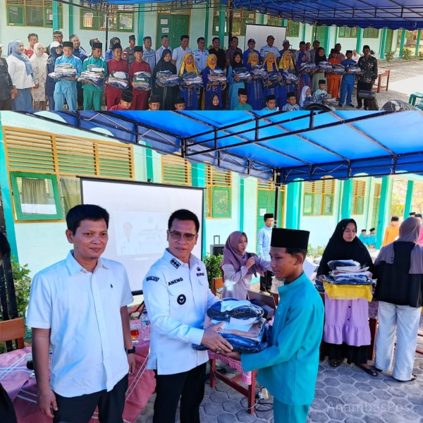 KARUNAKEPRI.COM, ANAMBAS – Komitmen Bupati Kepulauan Anambas, Aneng, dalam mendukung dunia pendidikan kembali ditunjukkan melalui aksi nyata. Didampingi Wakil Bupati Raja Bayu, Bupati Aneng menyerahkan bantuan seragam sekolah secara gratis kepada 32 siswa Madrasah Tsanawiyah (MTs) Al-Ma’arif di Desa Batu Berapit, Kecamatan Jemaja, Minggu (03/08/2025).